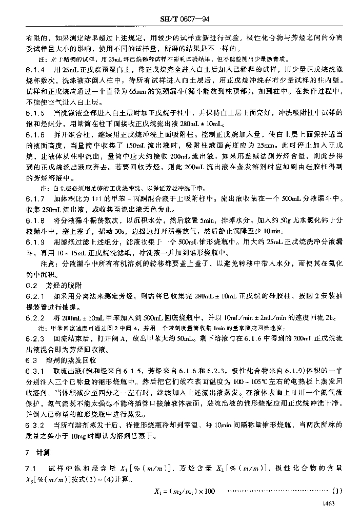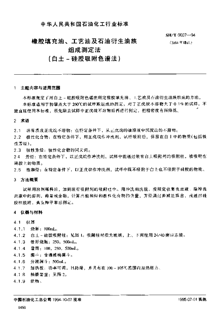 SH/T 0607-1994 橡胶填充油、工艺油及石油衍生油族组成测定法(白土-硅胶吸附色谱法)