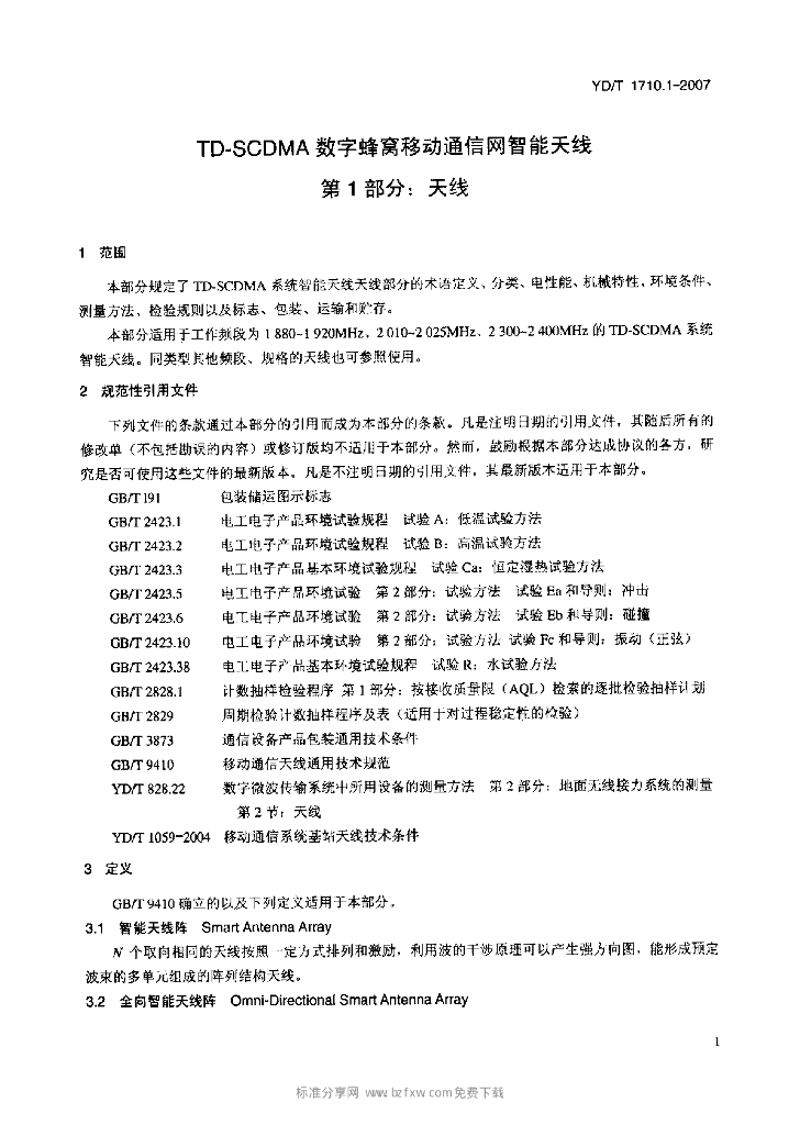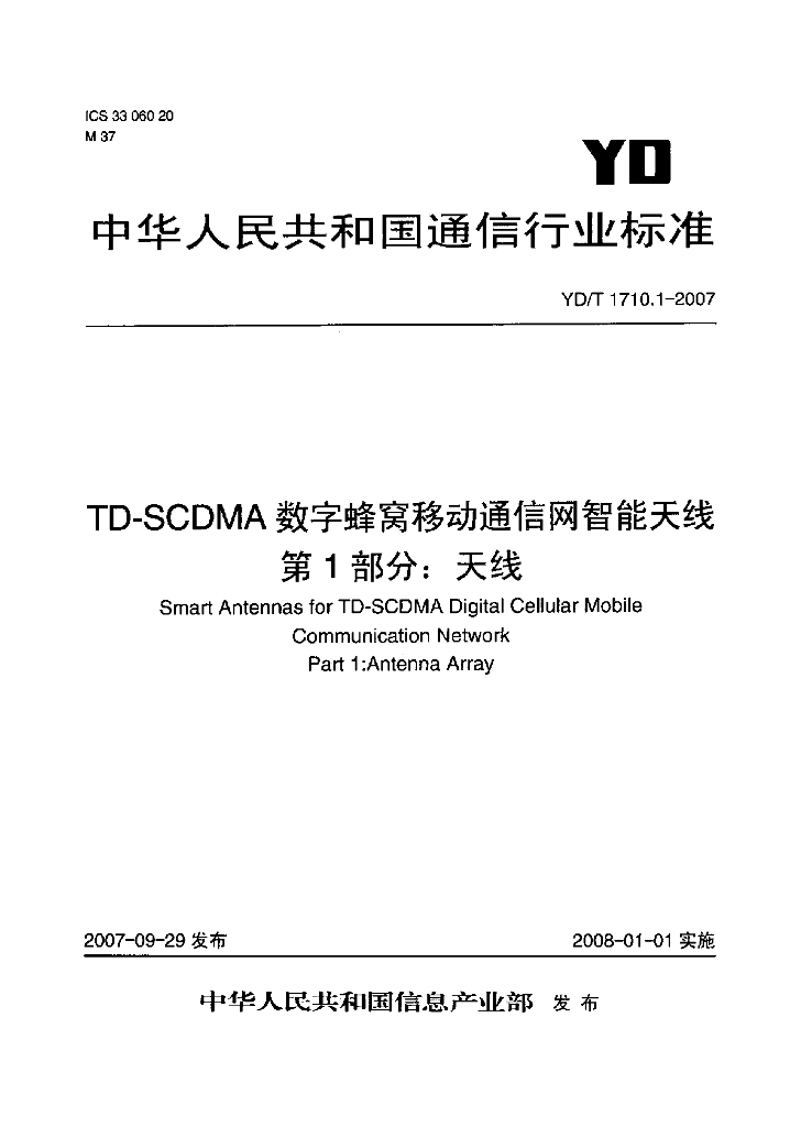 YD/T 1710.1-2007 TD-SCDMA 数字蜂窝移动通信网智能天线 第1部分:天线