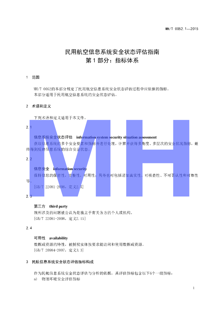 MH/T 0052.1-2015 民用航空信息系统安全状态评估指南 第1部分:指标体系