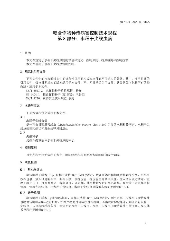 DB13/T 5371.8-2025 粮食作物种传病害控制技术规程 第8部分:水稻干尖线虫病