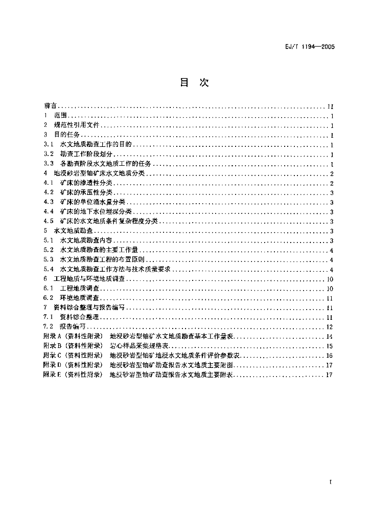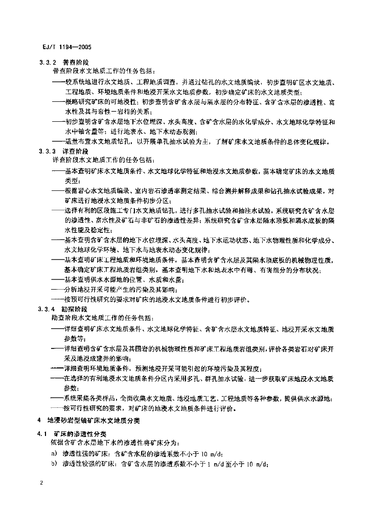 EJ/T 1194-2005 地浸砂岩型铀矿水文地质勘查规范