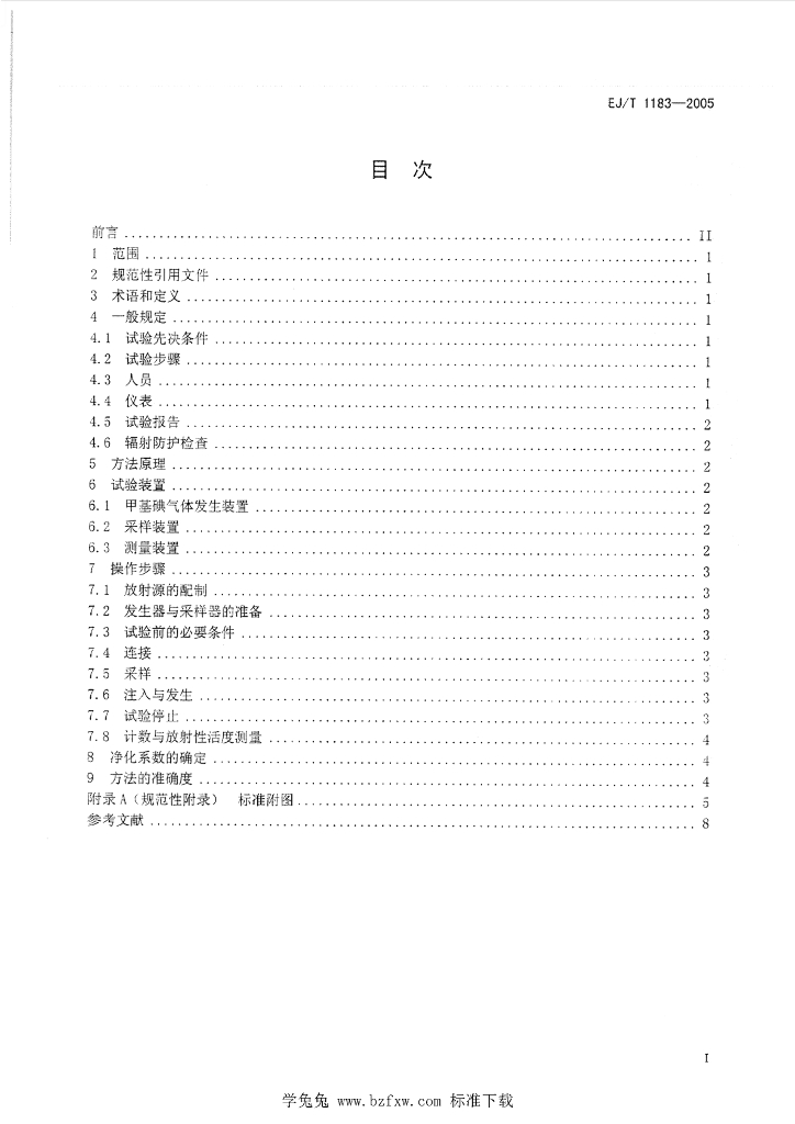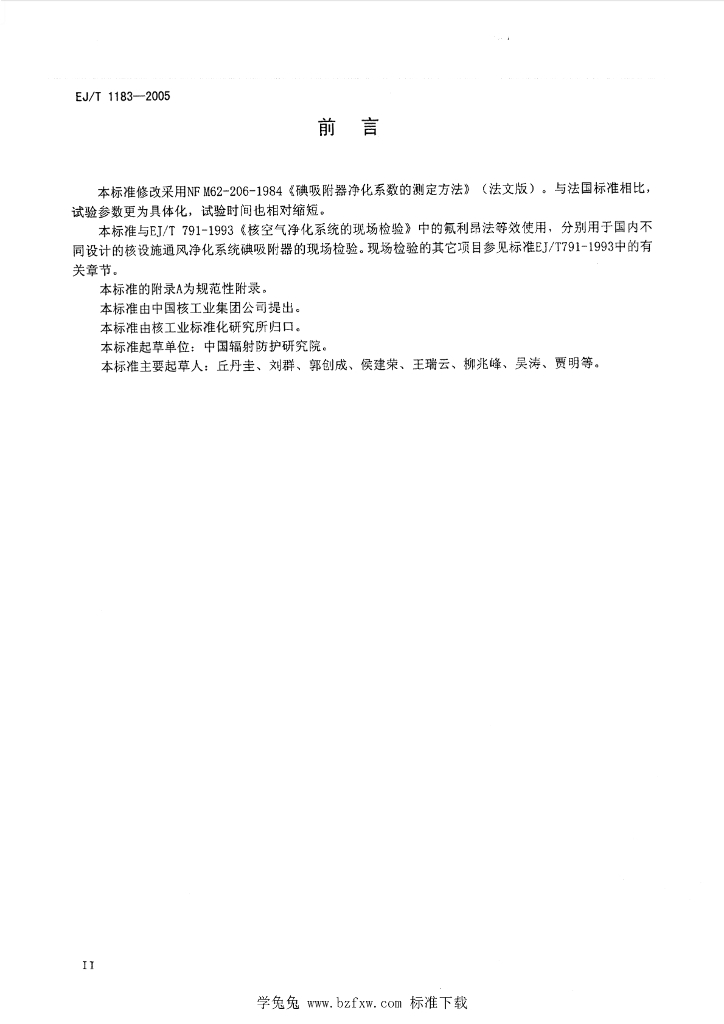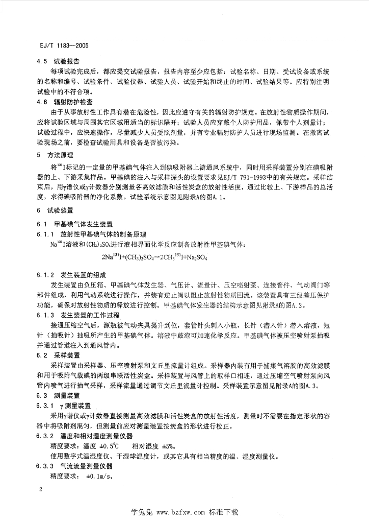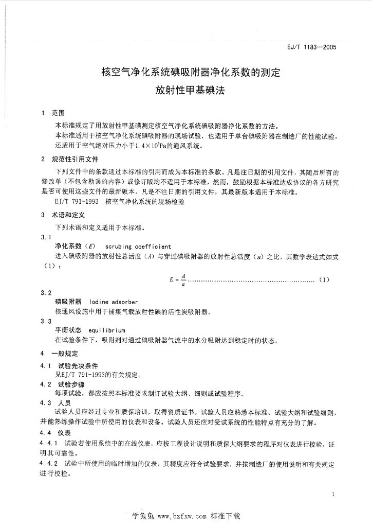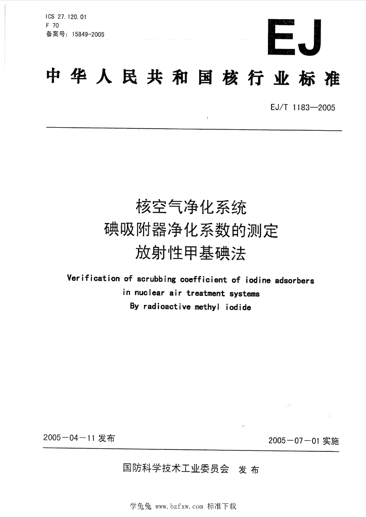 EJ/T 1183-2005 核空气净化系统碘吸附器净化系数的测定 放射性甲基碘法