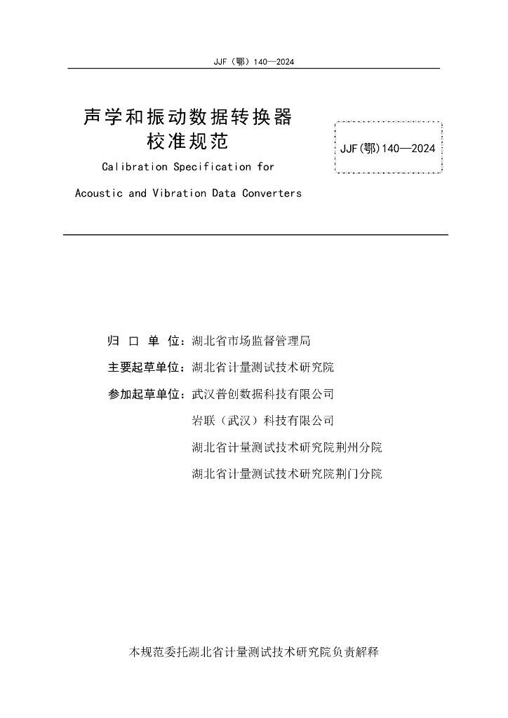 JJF(鄂)140-2024 声学和振动数据转换器校准规范