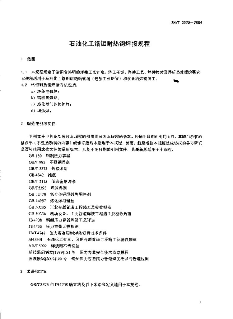 SH/T 3520-2004 石油化工铬钼耐热钢焊接规程