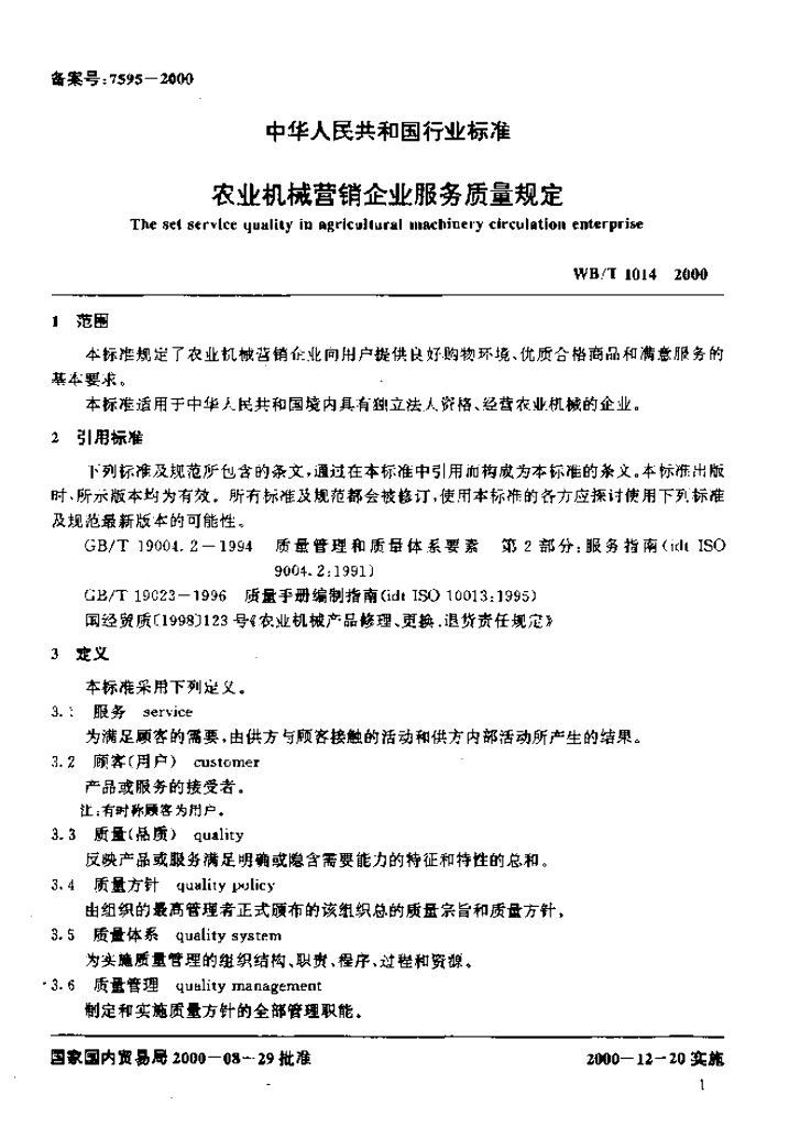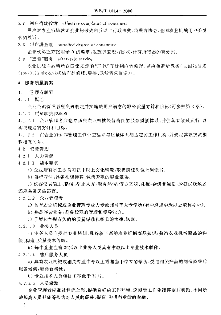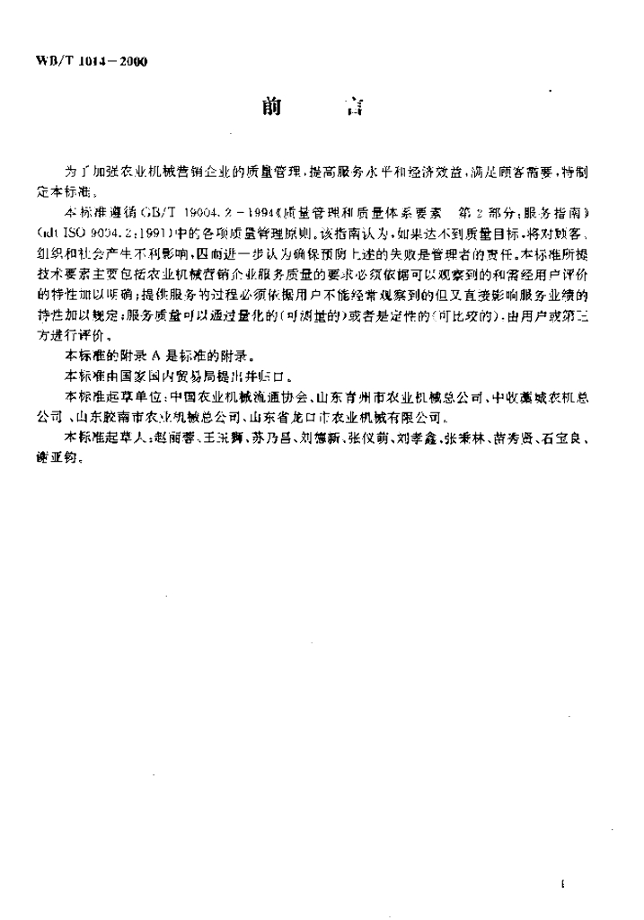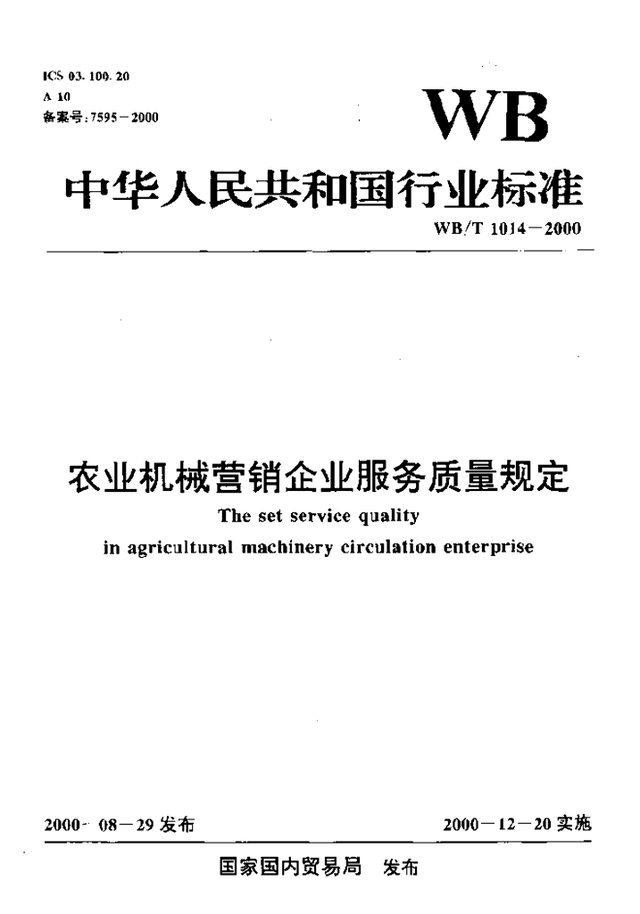 WB/T 1014-2000 农业机械营销企业服务质量规定