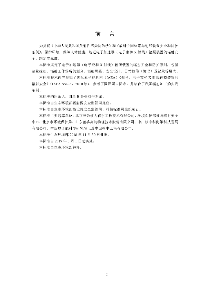 HJ 979-2018 电子加速器辐照装置辐射安全和防护