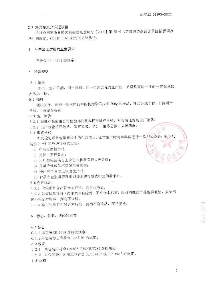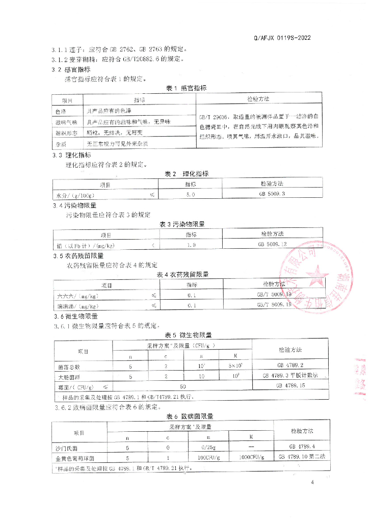 Q/AFJX 0119S-2022 莲子粉(固体饮料)