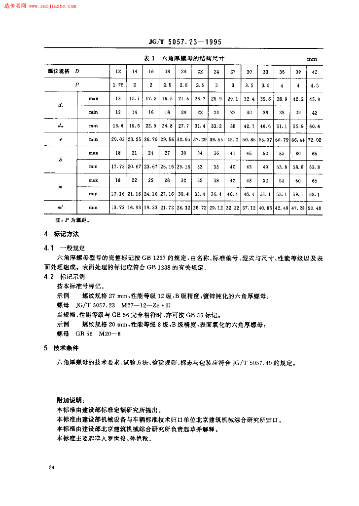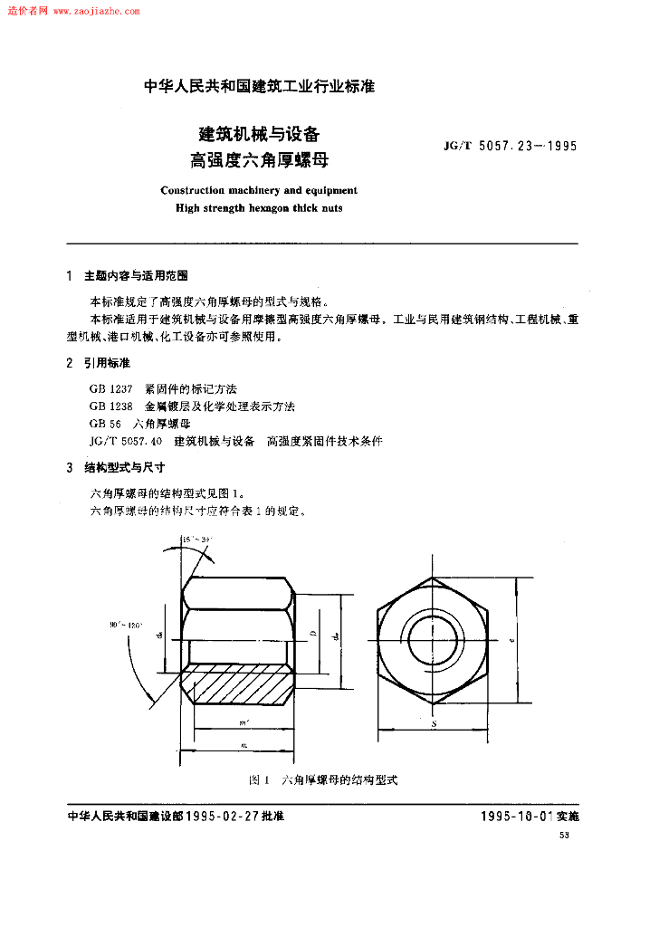 JG/T 5057.23-1995 建筑机械与设备高强度六角厚螺母规范