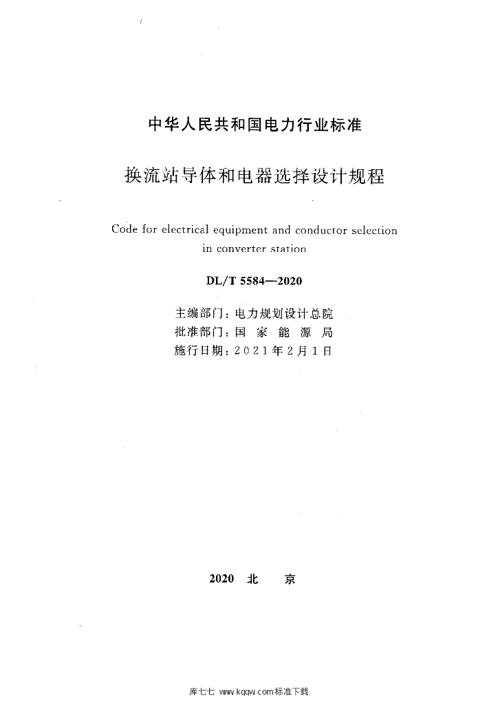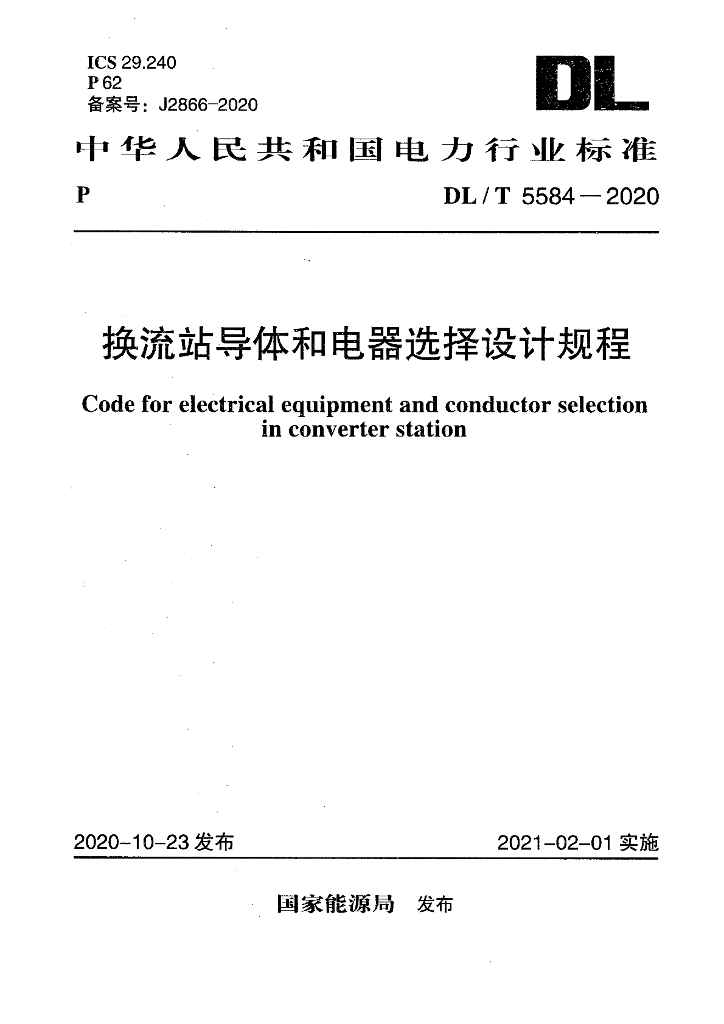 DL/T 5584-2020 换流站导体和电器选择设计规程