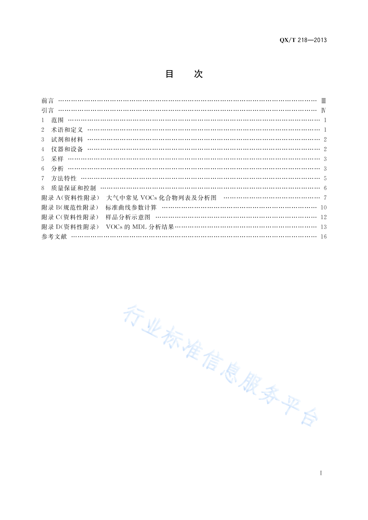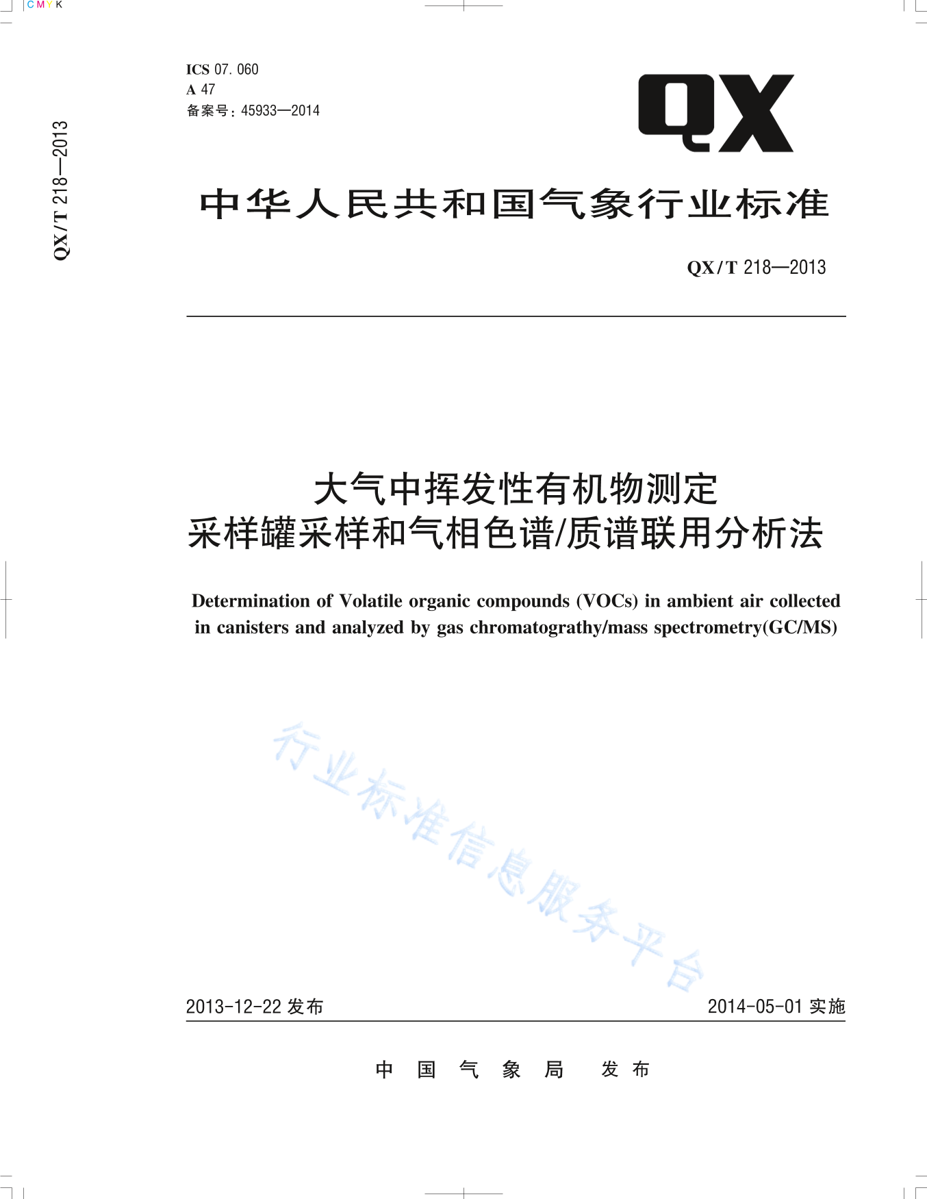 QX/T 218-2013 大气中挥发性有机物测定 采样罐采样和气相色谱/质谱联用分析法