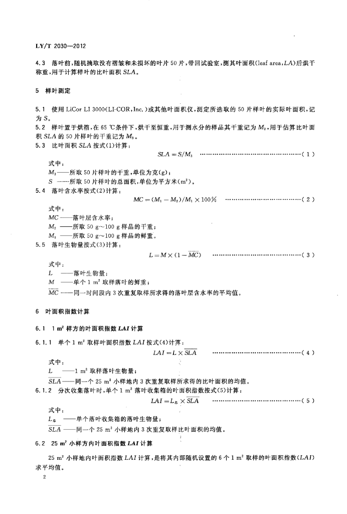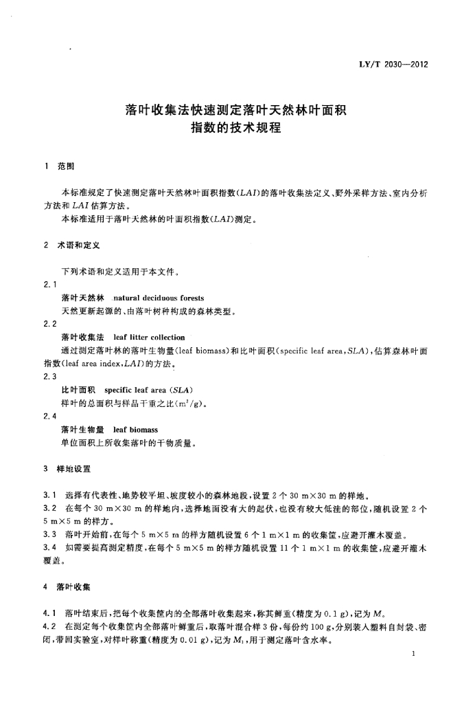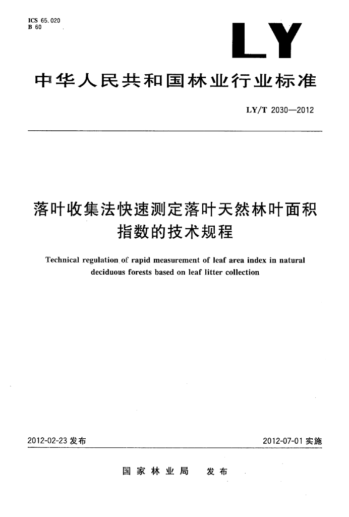 LY/T 2030-2012 落叶收集法快速测定落叶天然林叶面积指数的技术规程