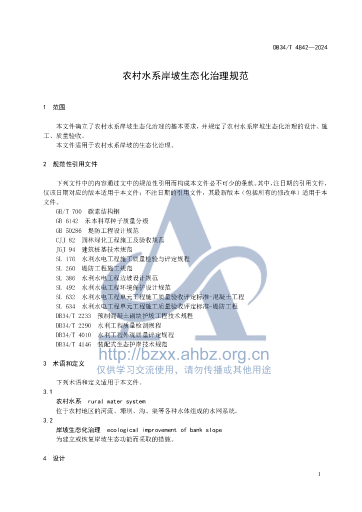 DB34/T 4842-2024 农村水系岸坡生态化治理规范
