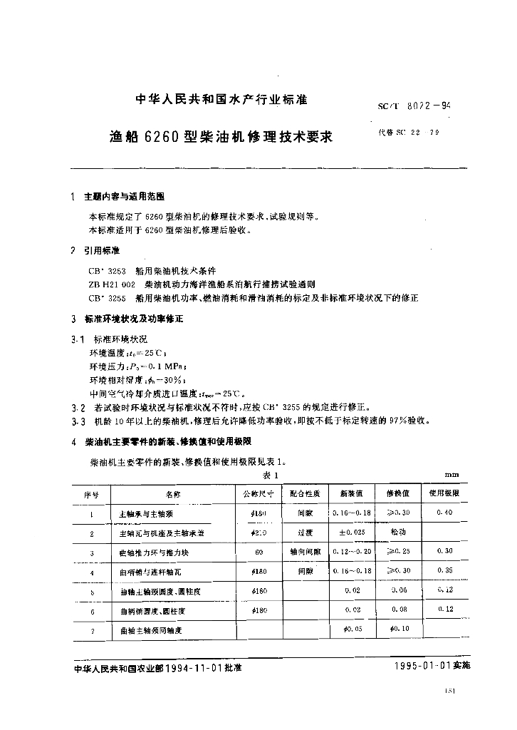 SC/T 8022-1994 渔船6260型柴油机修理技术要求