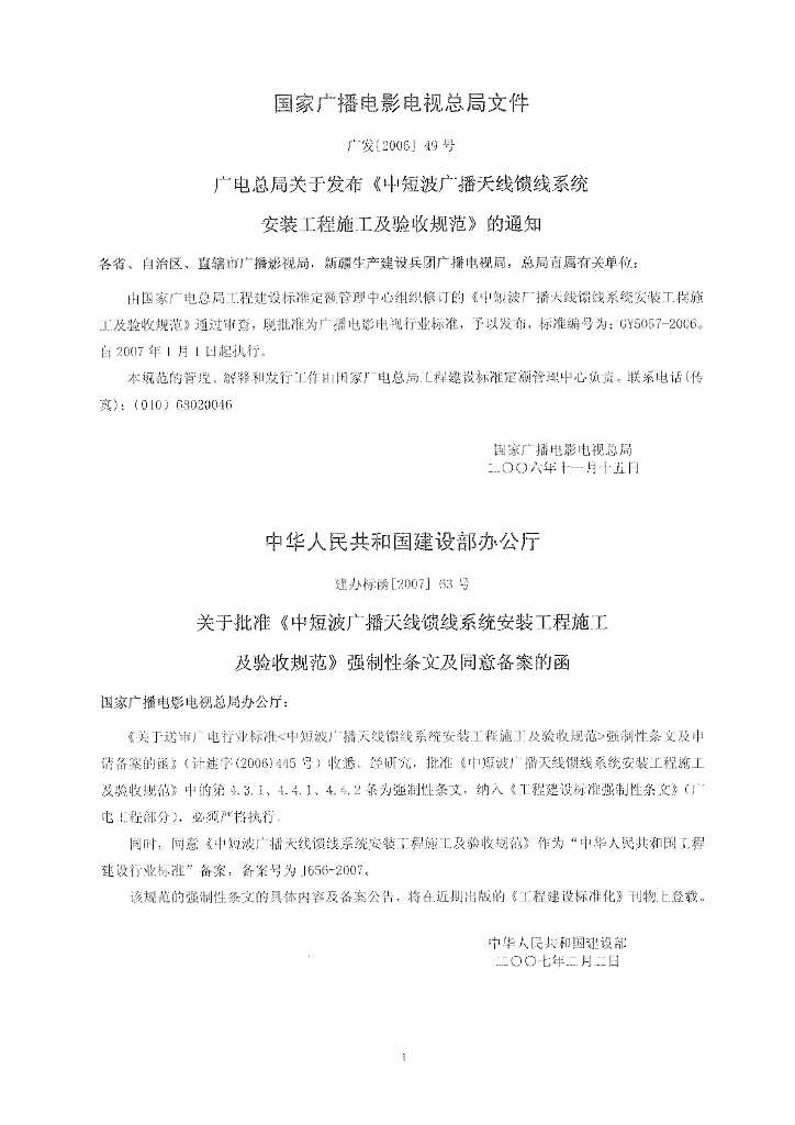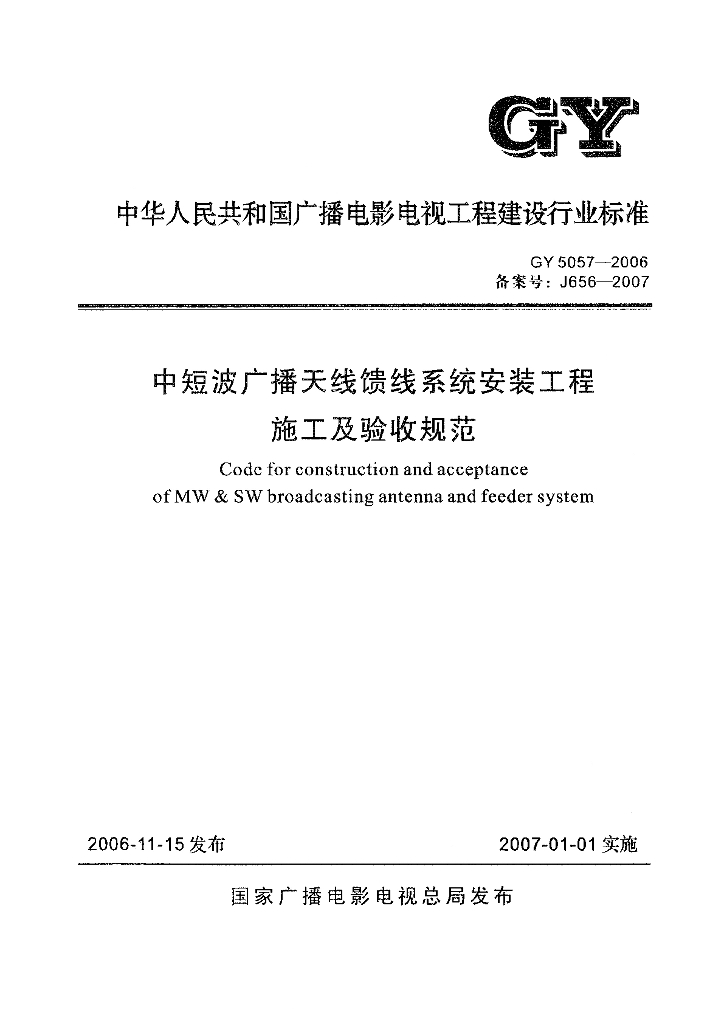 GY 5057-2006 中短波广播天线馈线系统安装工程施工及验收规范