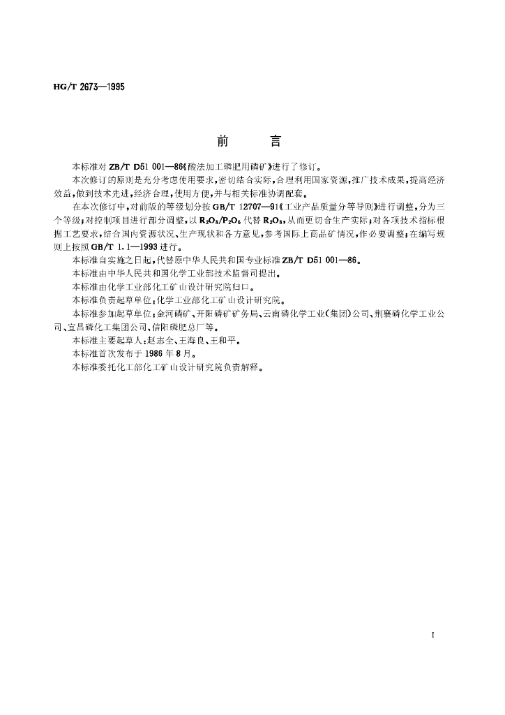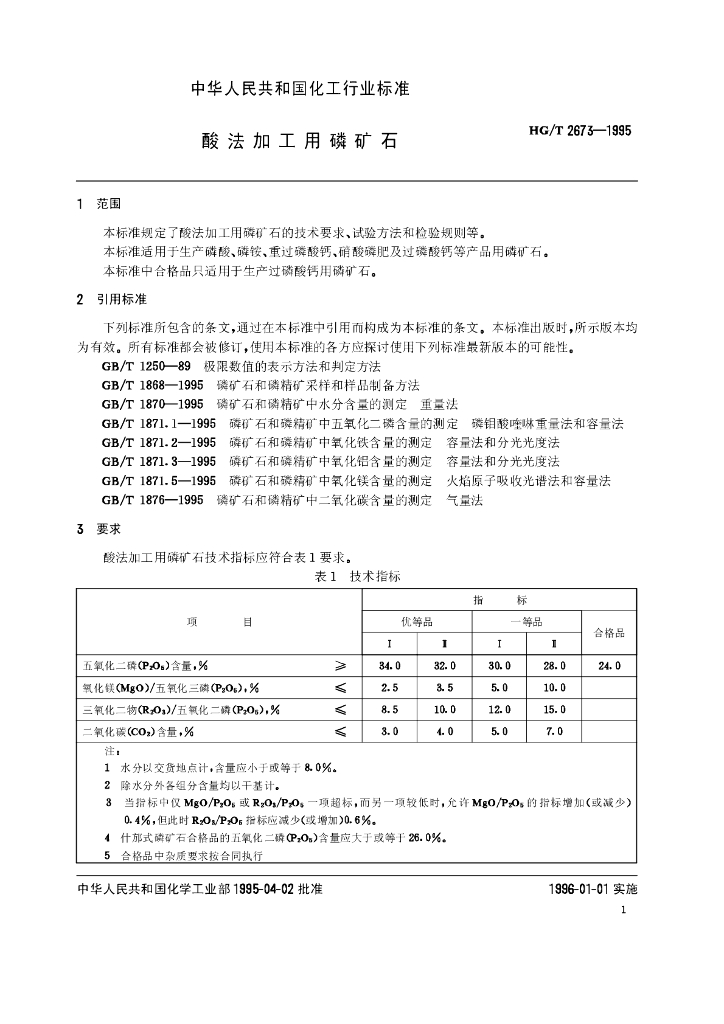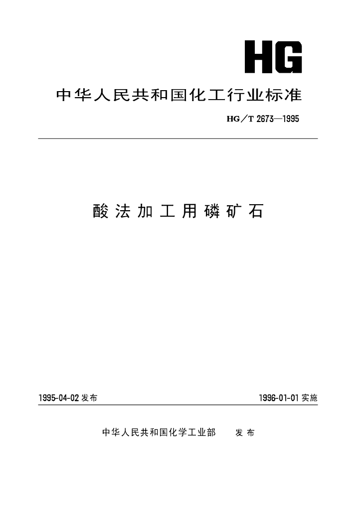 HG/T 2673-1995 酸法加工用磷矿石