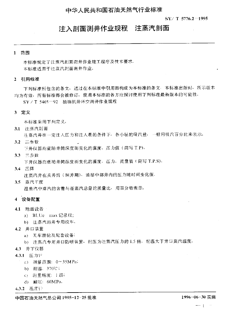SY/T 5776.2-1995 注入剖面测井作业规程 注蒸汽剖面