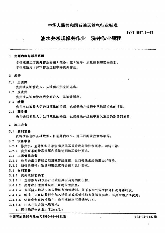 SY/T 5587.7-1993 油水井常规修井作业 洗井作业规程