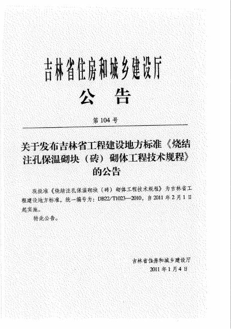 DB22/T 1023-2010 烧结注孔保温砌块(砖)砌体工程技术规程