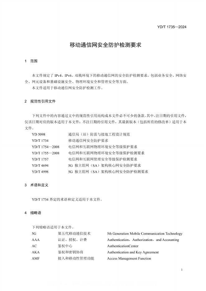 YD/T 1735-2024 移动通信网安全防护检测要求