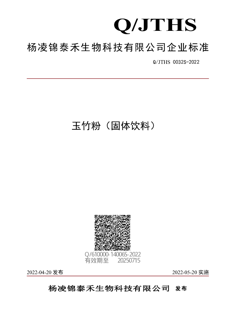 Q/JTHS 0032S-2022 玉竹粉(固体饮料)
