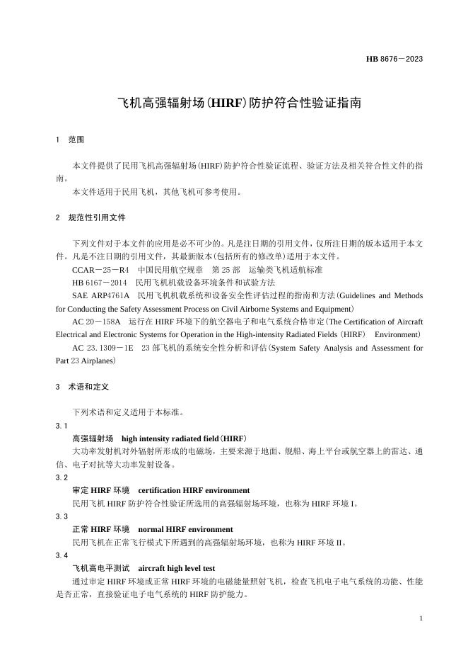 HB 8676-2023 飞机高强辐射场(HIRF)防护符合性验证指南