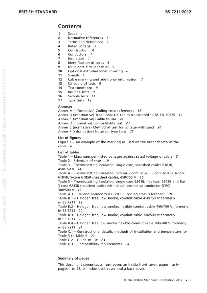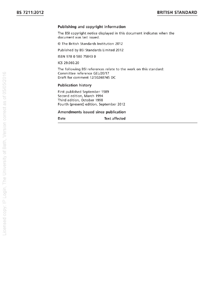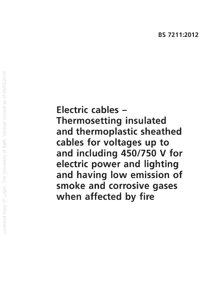 BS 7211:2012 电缆 额定电压450 750及以下热固性绝缘热塑性护套电力和照明用低烟低卤电缆
