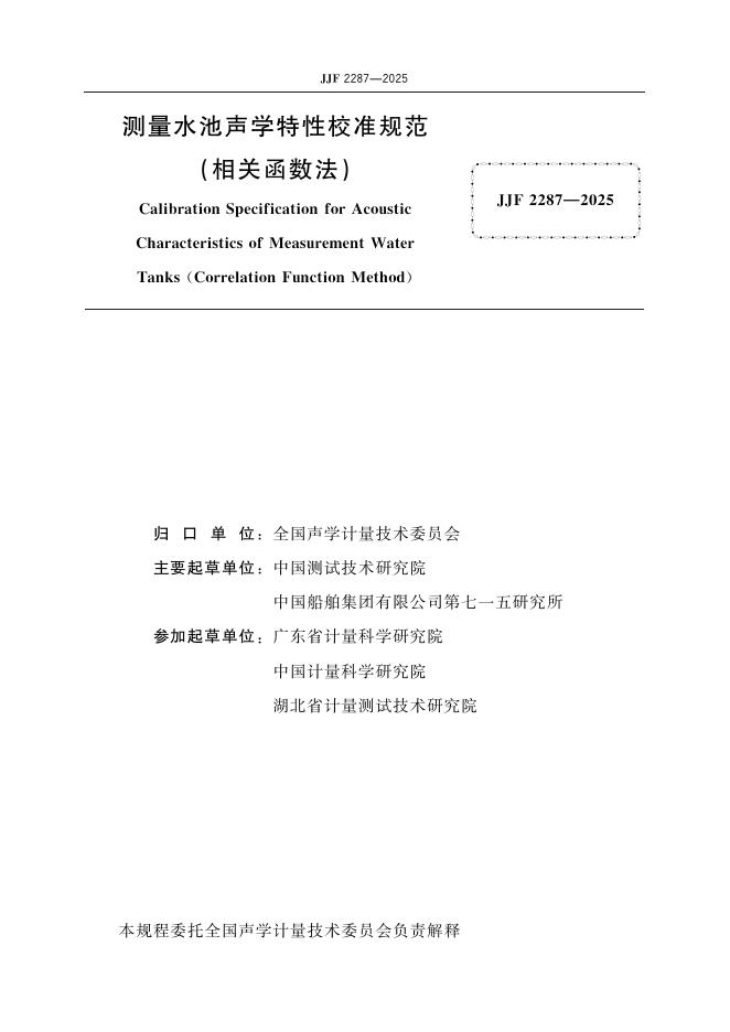 JJF 2287-2025 测量水池声学特性校准规范(相关函数法)