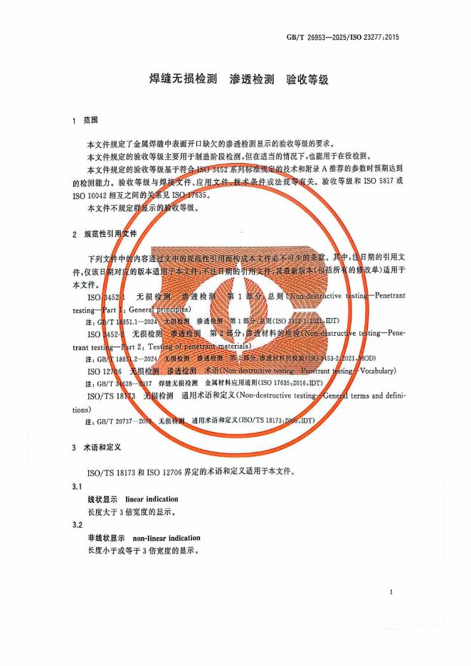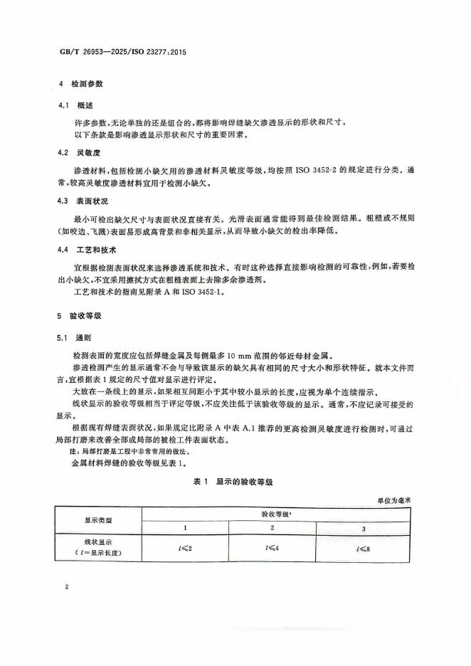 GB/T 26953-2025 焊缝无损检测 渗透检测 验收等级