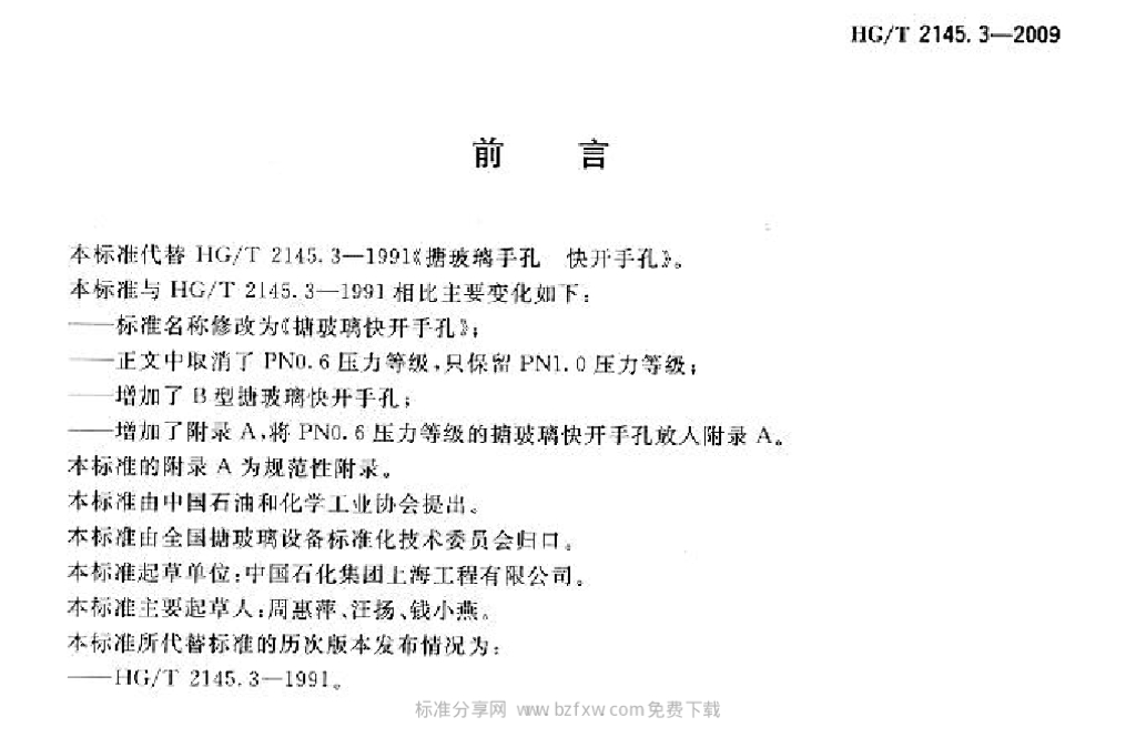 HG/T 2145.3-2009 代替 HG/T 2145.3-1991 搪玻璃快开手孔