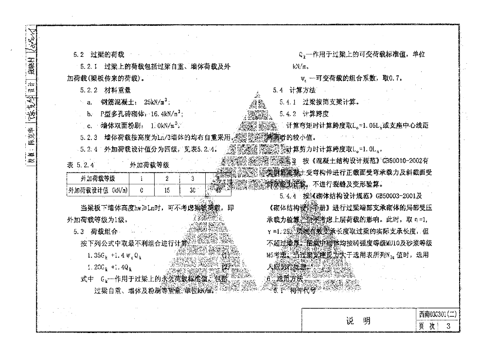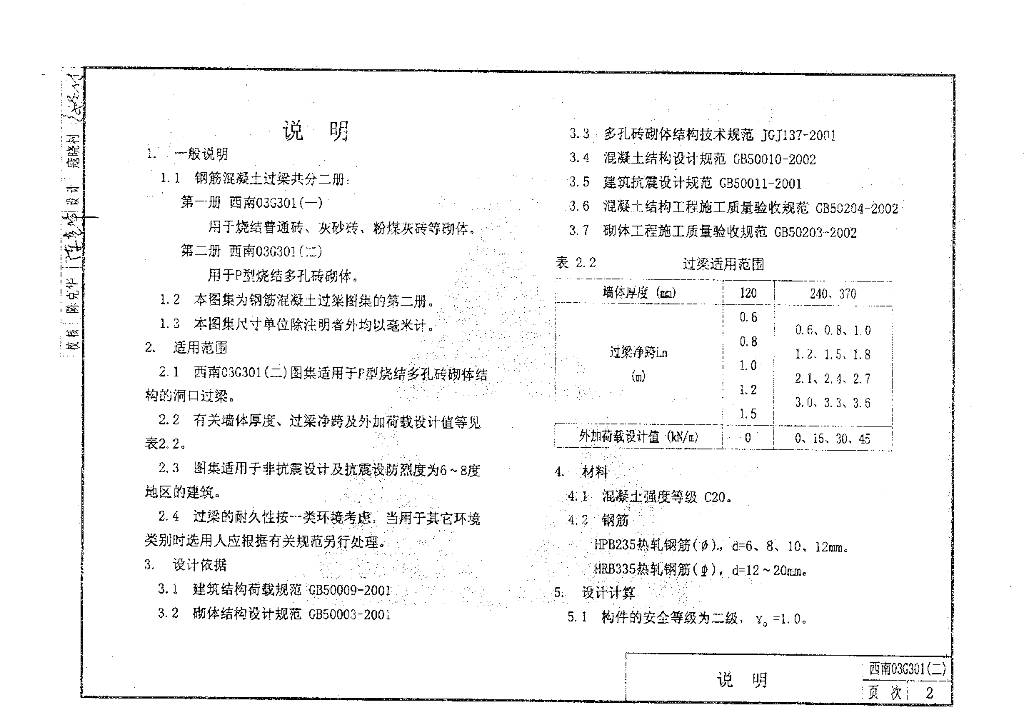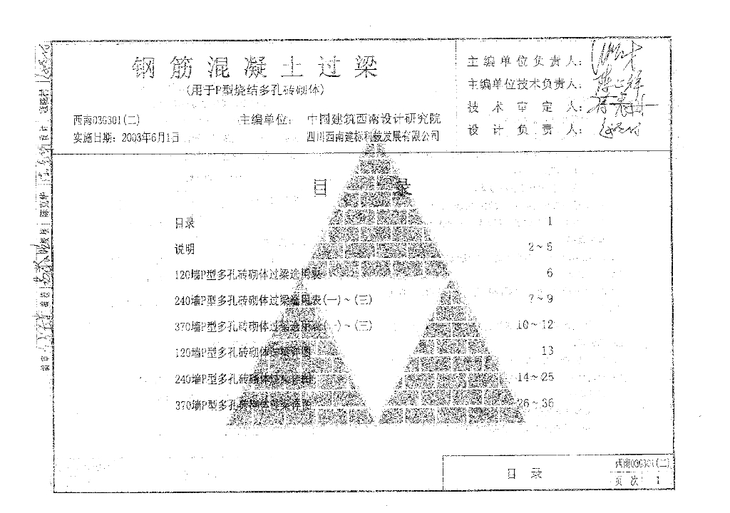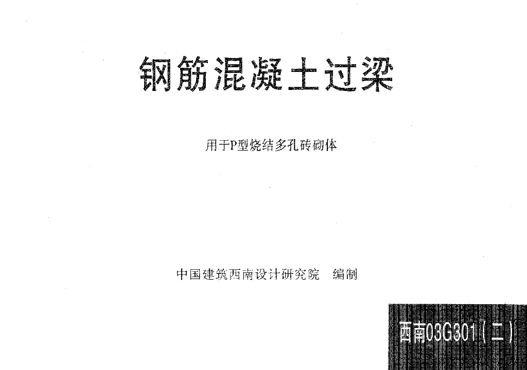西南03G301(二) 钢筋混凝土过梁(用于P型烧结多孔砖砌块)图集