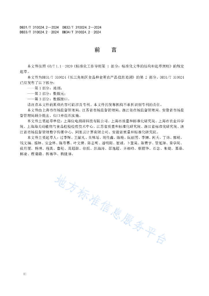上海海关动植物与食品检验检疫技术中心、江苏省质量和标准化研究院、浙江省标准化研究院、浙江省市场监督管理数字传媒中心、阿里云计算有限公司、安徽省质量和标准化研究院