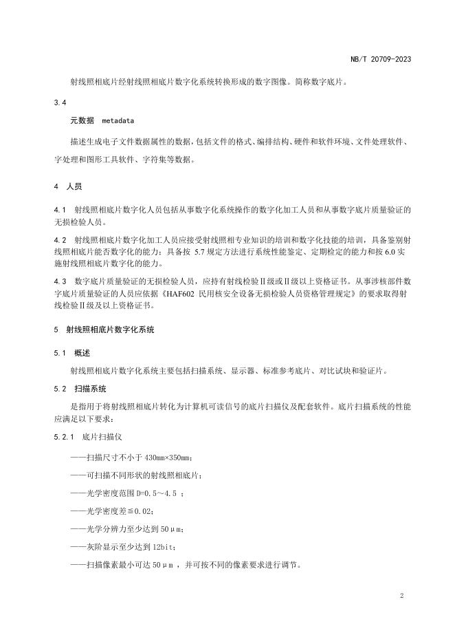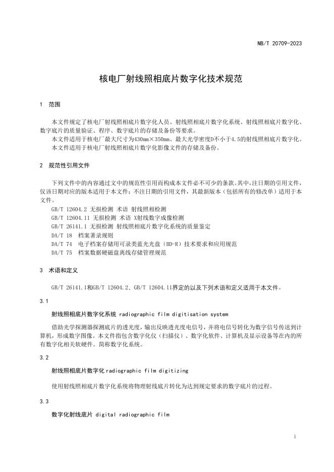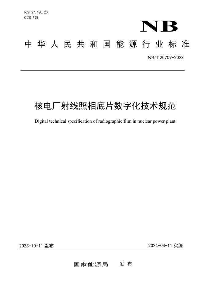 NB/T 20709-2023 核电厂射线照相底片数字化技术规范