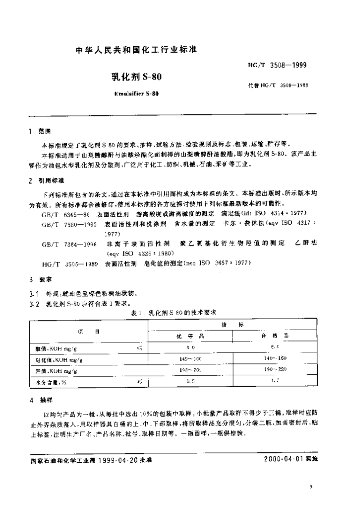 HG/T 3508-1999 乳化剂 S-80