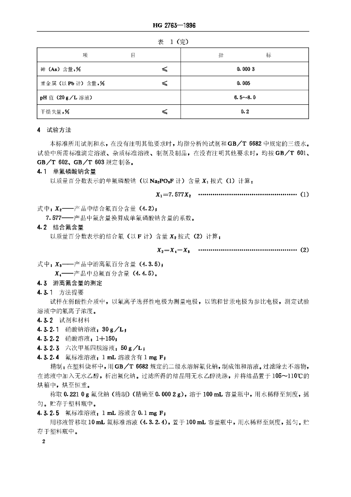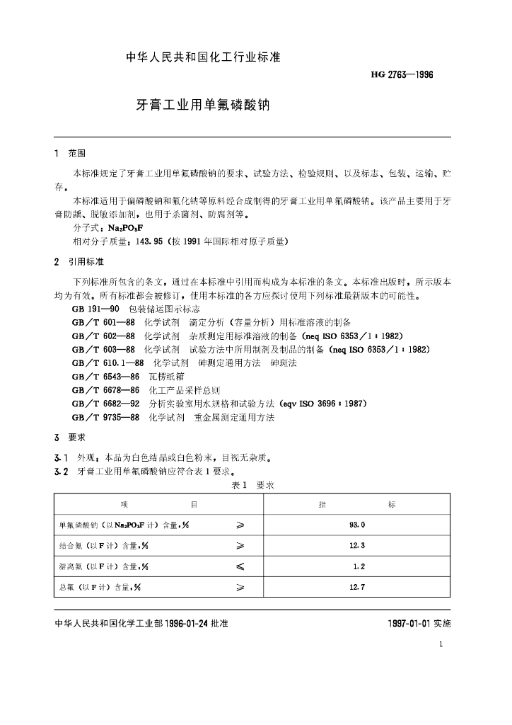 HG/T 2763-1996 牙膏工业用单氟磷酸钠