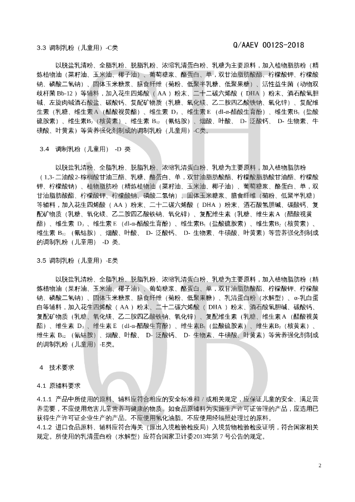 Q/AAEV 0012S-2018 调制乳粉(儿童用)