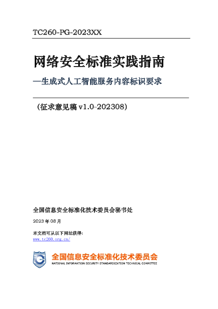 - 10TC260-PG-2023XX 网络安全标准实践指南——生成式人工智能服务内容标识要求(征求意见稿)