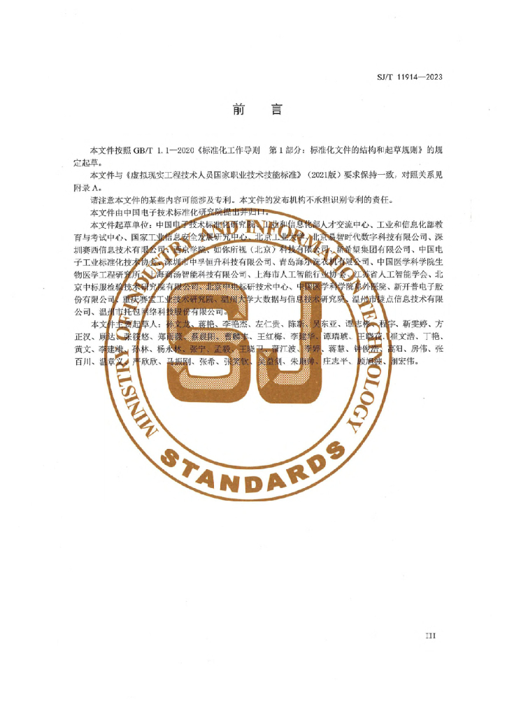 中国电子技术标准化研究院、工业和信息化部人才交流中心、工业和信息化部教育与考试中心、国家工业信息安全发展研究中心、北京工业大学、北京易智时代数字科技有限公司、深圳赛西信息技术有限公司、西京学院、如你所视(北京)科技有限公司、新希望集团有限公司、中国电子工业标准化技术协会、深圳市中孚恒升科技有限公司、青岛海尔洗衣机有限公司、中国医学科学院生物医学工程研究院、上海商汤智能科技有限公司、上海市人工智能行业协会、江苏省人工智能学会、北京中标服检验技术研究院有限公司、北京中电标研技术中心、中国医学科学院阜外医院、新