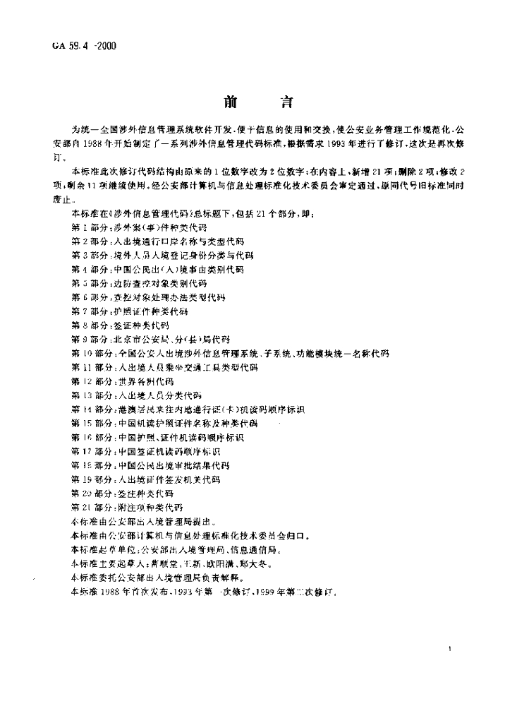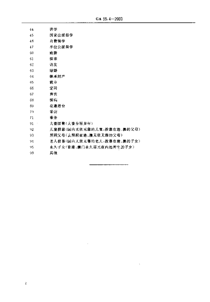 GA 59.4-2000 涉外信息管理代码 第4部分:中国公民出(入)境事由类别代码