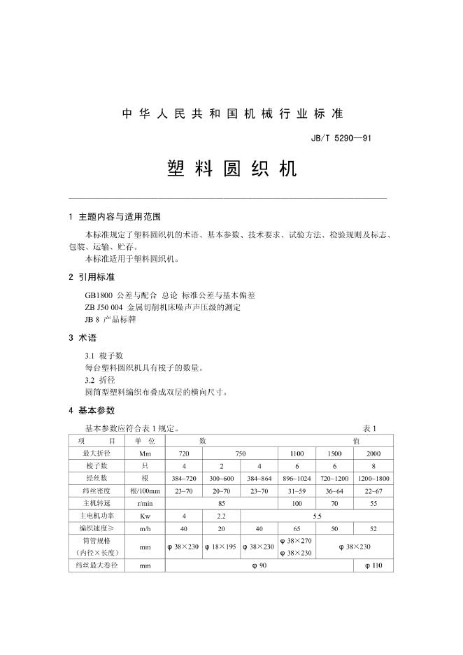 JB/T 5290-1991 塑料圆织机