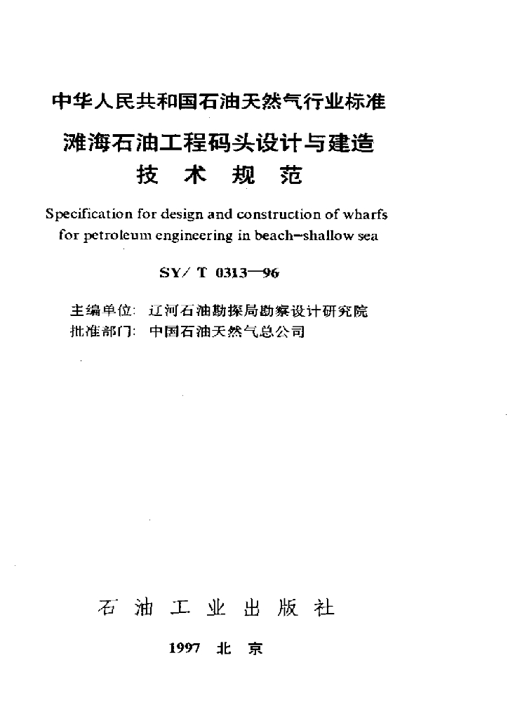 SY/T 313-1996 滩海石油工程码头设计与建造技术规范