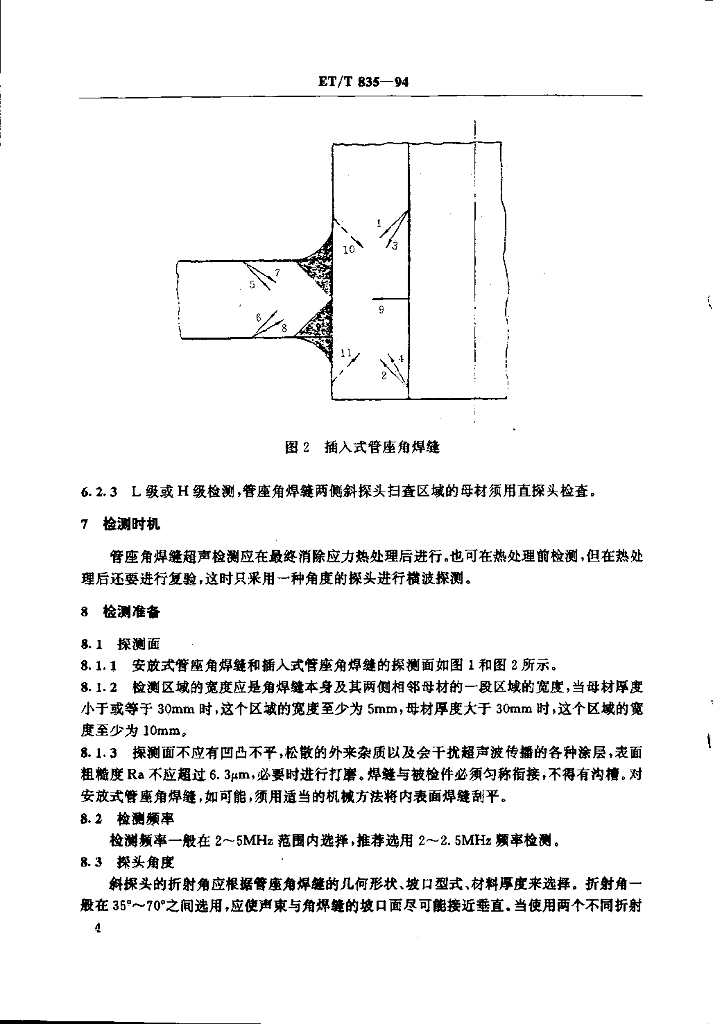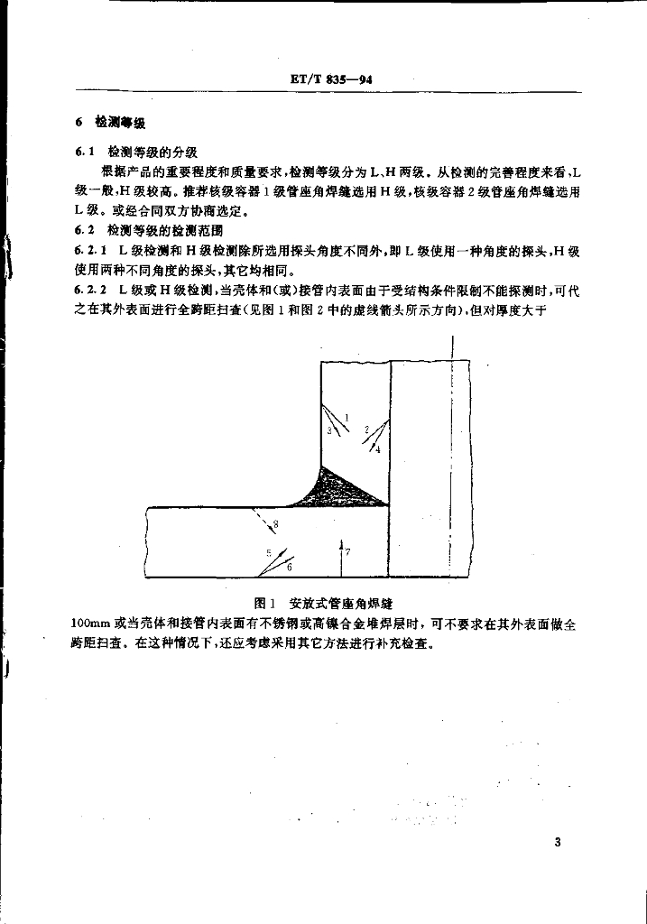 EJ/T 835-1994 核级容器管座角焊缝超声探伤方法与验收准则
