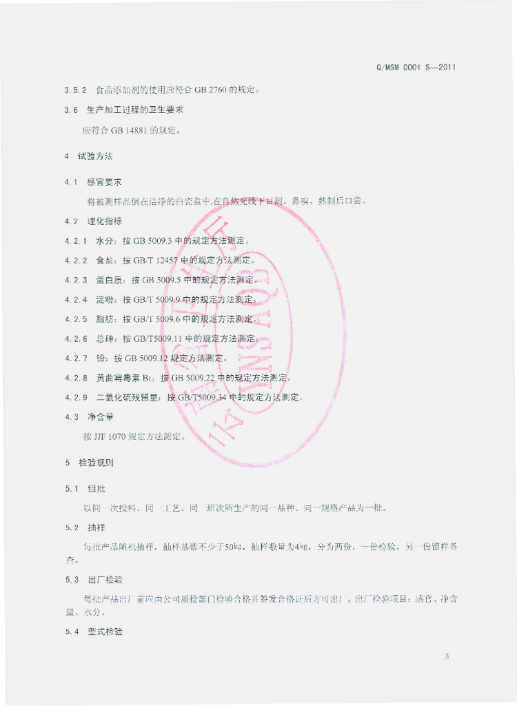 Q/MSM 0001S-2011 香豆腐