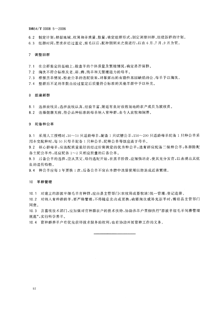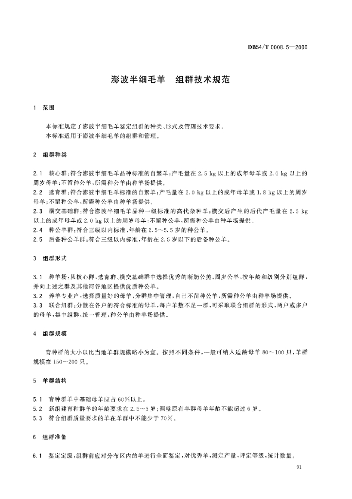 DB54/T 0008.5-2006 澎波半细毛羊 组群技术规范