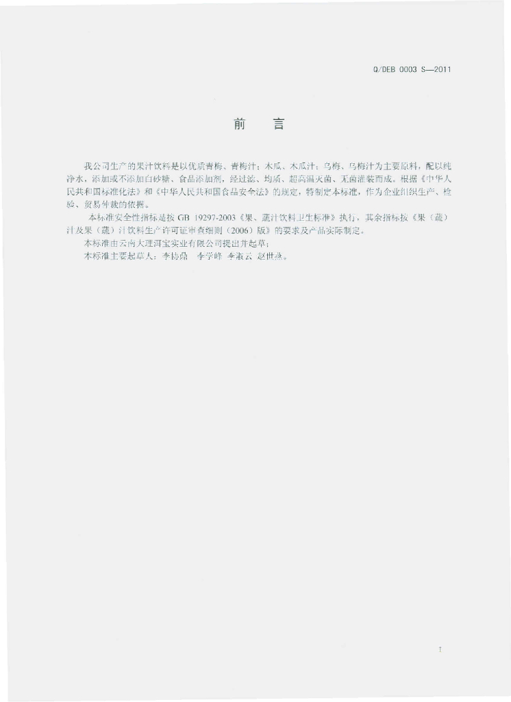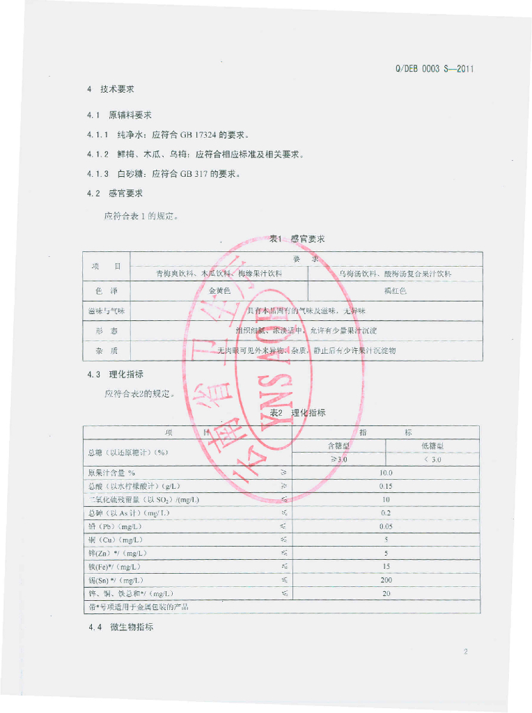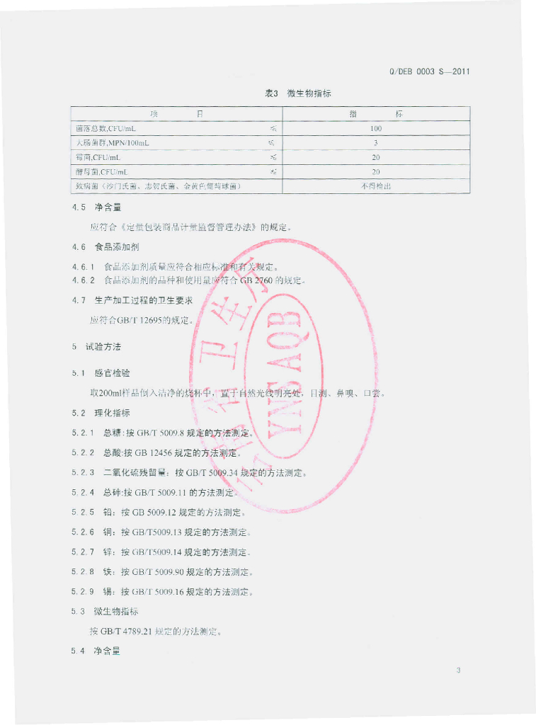 Q/DEB 0003S-2011 果汁饮料
