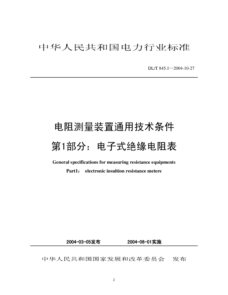 DL/T 845-2004 电阻测量装置通用技术条件