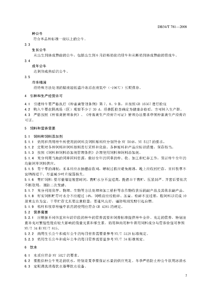 DB34/T 781-2008 种公牛饲养管理技术规程
