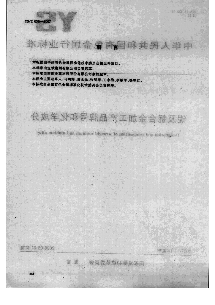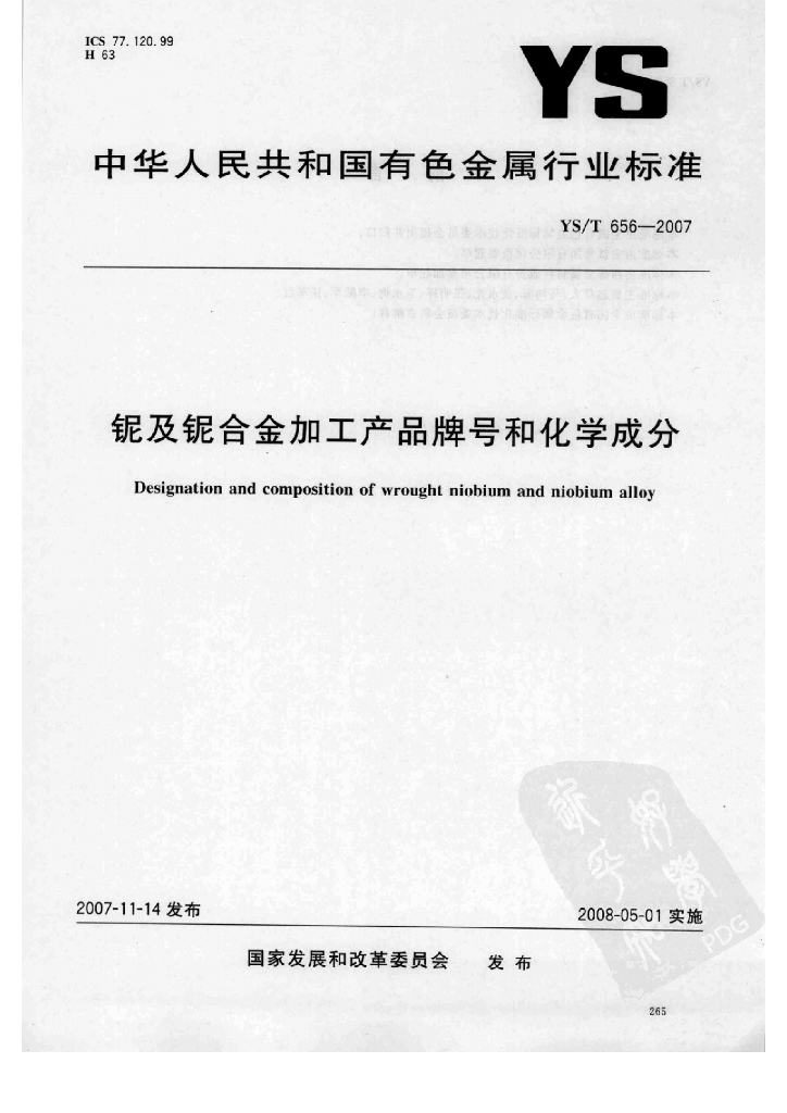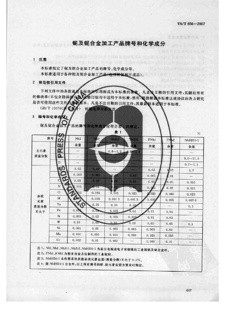 YS/T 656-2007 铌及铌合金加工产品牌号和化学成分