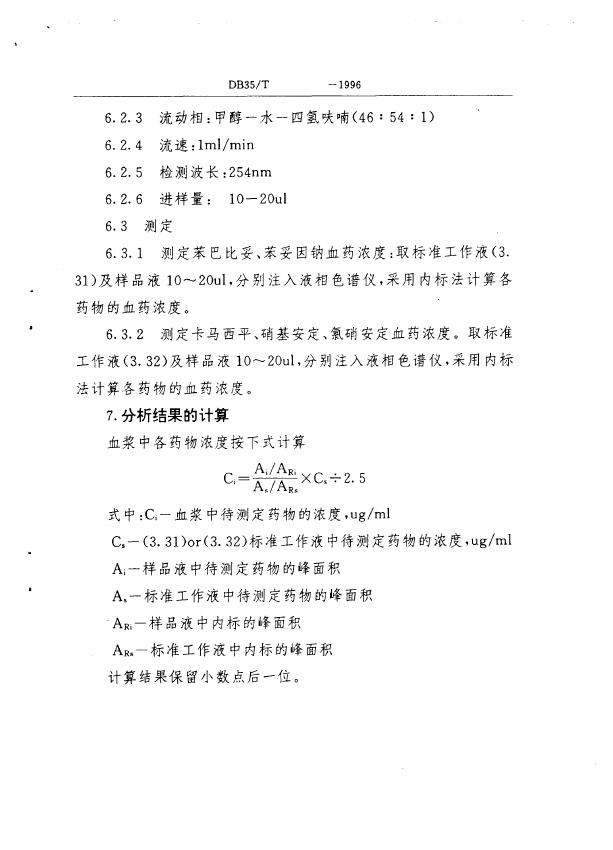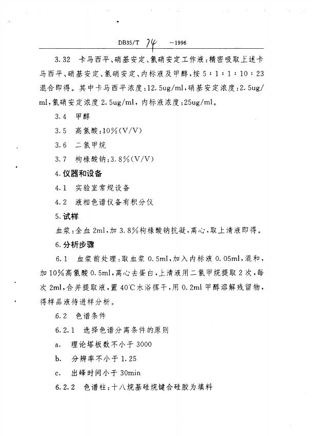DB35/T 74-1996 抗癫痫药物血药浓度的测定方法