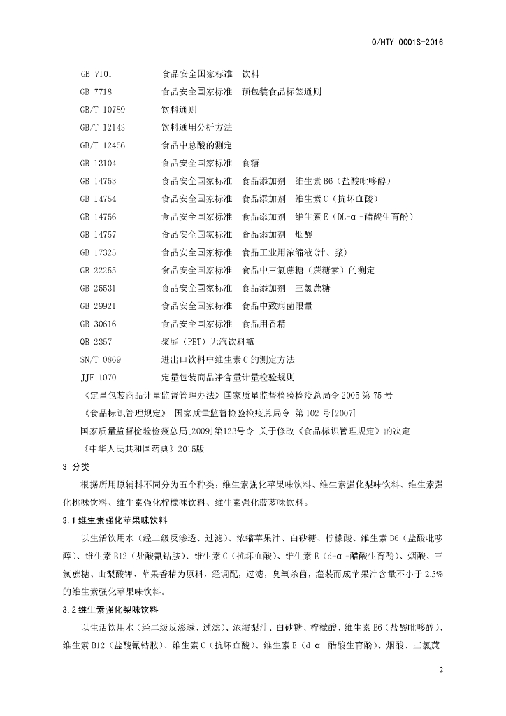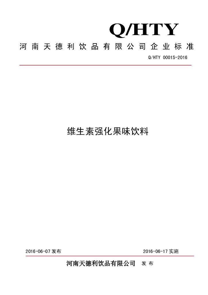 Q/HTY 0001S-2016 河南天德利饮品有限公司 维生素强化果味饮料