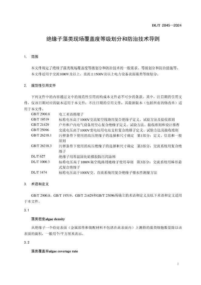 DL/T 2845-2024 绝缘子藻类覆盖度等级划分和防治技术导则